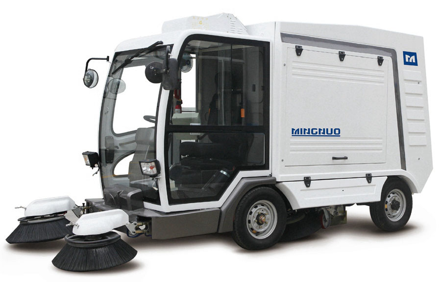手推式掃路車:手推式掃路車是一種小型掃路車。清掃作業(yè)時(shí)操作人員在掃路車后面用手推動(dòng)掃路車前進(jìn)。這種掃路車清掃寬度一般在800–1200mm之間,且大多在lOOOmm以下,平均清掃速度一般為3 km/h,較高清掃速度一般為Skm/h。由于手推式掃路車操作時(shí),操作人員有一定的勞動(dòng)強(qiáng)度,所以它僅適用于路面平整區(qū)域的清掃,如室內(nèi)、廣場(chǎng)等。
