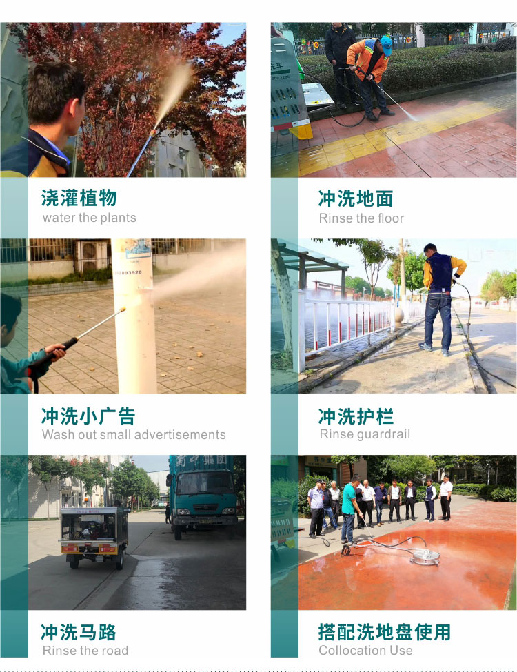 高壓沖洗車和普通的灑水車不同,高壓沖洗車主要是清潔作用。我們的三輪高壓沖洗車可用作臺(tái)階、欄桿、垃圾桶等對(duì)象的清潔,也可用于行道樹的清洗和地面降塵,其高壓水可沖洗20米左右的樹木,不但可用于市政,還可以用于園林,小區(qū),學(xué)校等地方,適用場(chǎng)景較多,價(jià)格相對(duì)便宜。